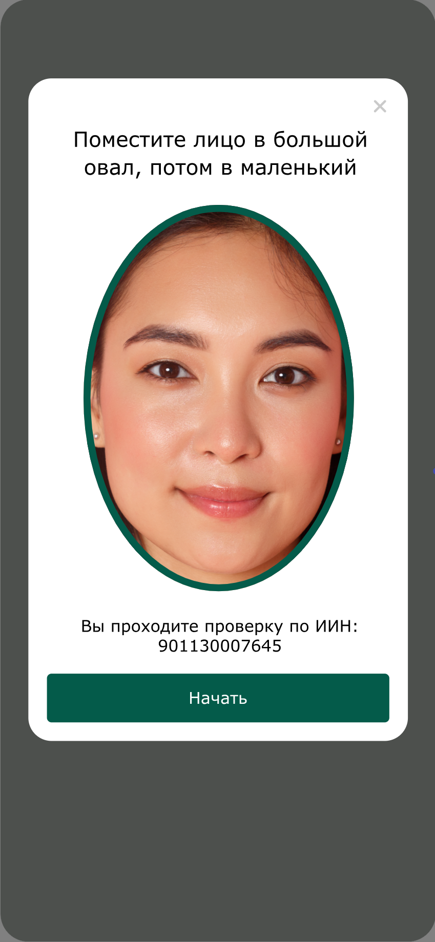 <figure><img src="https://3642634829-files.gitbook.io/~/files/v0/b/gitbook-x-prod.appspot.com/o/spaces%2FoKJIIe9wXRYlANVFHqJE%2Fuploads%2F9xiHR0mMDHF7eiZTlE8T%2Fimage.png?alt=media&#x26;token=19b744f3-6142-449c-8190-cb18630e89c3" alt="" width="375"><figcaption><p>Проведение liveness-проверки лица </p></figcaption></figure>